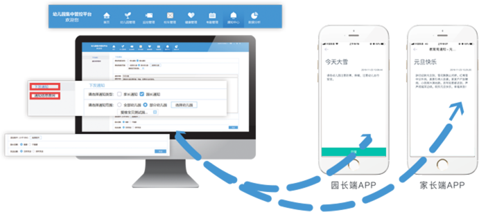 一鍵下發(fā)通知給幼兒園和家長,可查詢已發(fā)送或未發(fā)送的通知列表,發(fā)送通知一個工作日后,可根據(jù)通知查看率選擇是否給未查看的用戶二次推送。