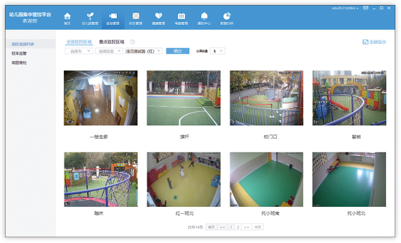 可實時查看下轄幼兒園開放區(qū)域監(jiān)控視頻,最多可一屏同時查看18路視頻,還可監(jiān)控各園校車行駛路徑及車內(nèi)視頻,幼兒園安全管理工作的執(zhí)行情況一目了然。